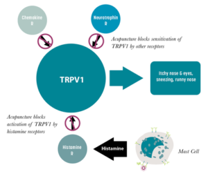 According most recent western medicine studies Acupuncture has been shown to reduce IgE (immunoglobulin which anchors to mast cells and creates inflammation in nasal mucosa) levels. Additionally, Acupuncture has also been shown to reduce other inflammatory neuropeptides such SP and VIP which creates itching, sneezing, runny and blocked nose in allergic rhinitis